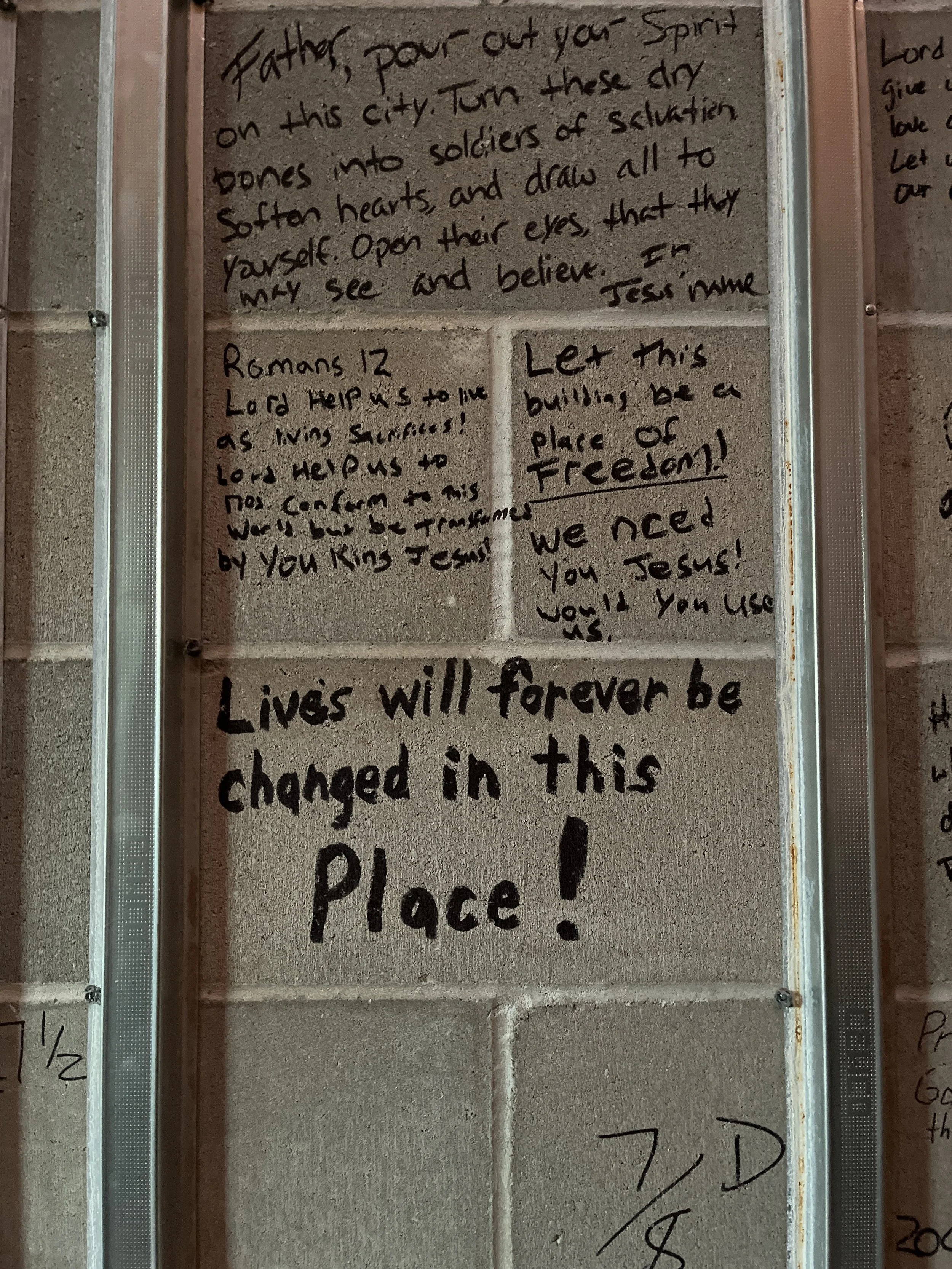 Construction is moving along at the Abundant Life Crossroads Campus. They recently hosted a “wall signing” event where future church members attended a short worship service and shared messages of hope on an interior wall before it is finished. We were honored to attend and to get a sneak peek, along with the Crossroads Campus Pastor Chad Glover, of people worshipping in this space. We look forward to this project being completed in January 2023 and are grateful to play a role, along with our partners at Mantel Teter, in bringing this new worship space to life.